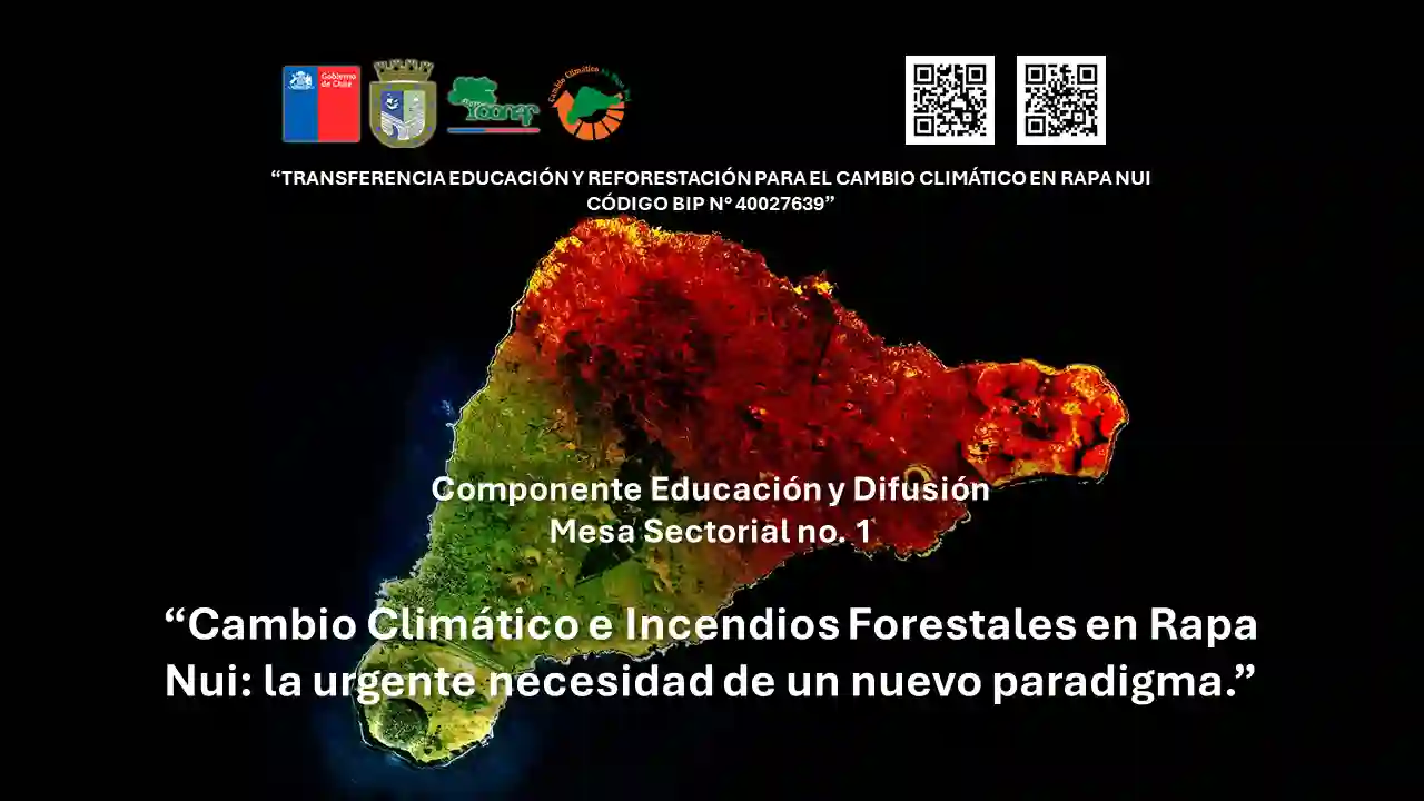 El 17 de mayo de 2024, se llevó a cabo la primera Mesa Sectorial del Programa «Transferencia Educación y Reforestación para el Cambio Climático en Rapa Nui». En esta oportunidad, el tema fue “Cambio Climático e Incendios Forestales en Rapa Nui: la urgente necesidad de un nuevo paradigma”. El tema fue seleccionado debido al impacto que los incendios forestales en el territorio tienen sobre el suelo y las barreras y problemas que imponen a los esfuerzos de reforestación. Por lo tanto, se trata de una excelente tema para inaugurar el subcomponente de mesas y conversatorios.