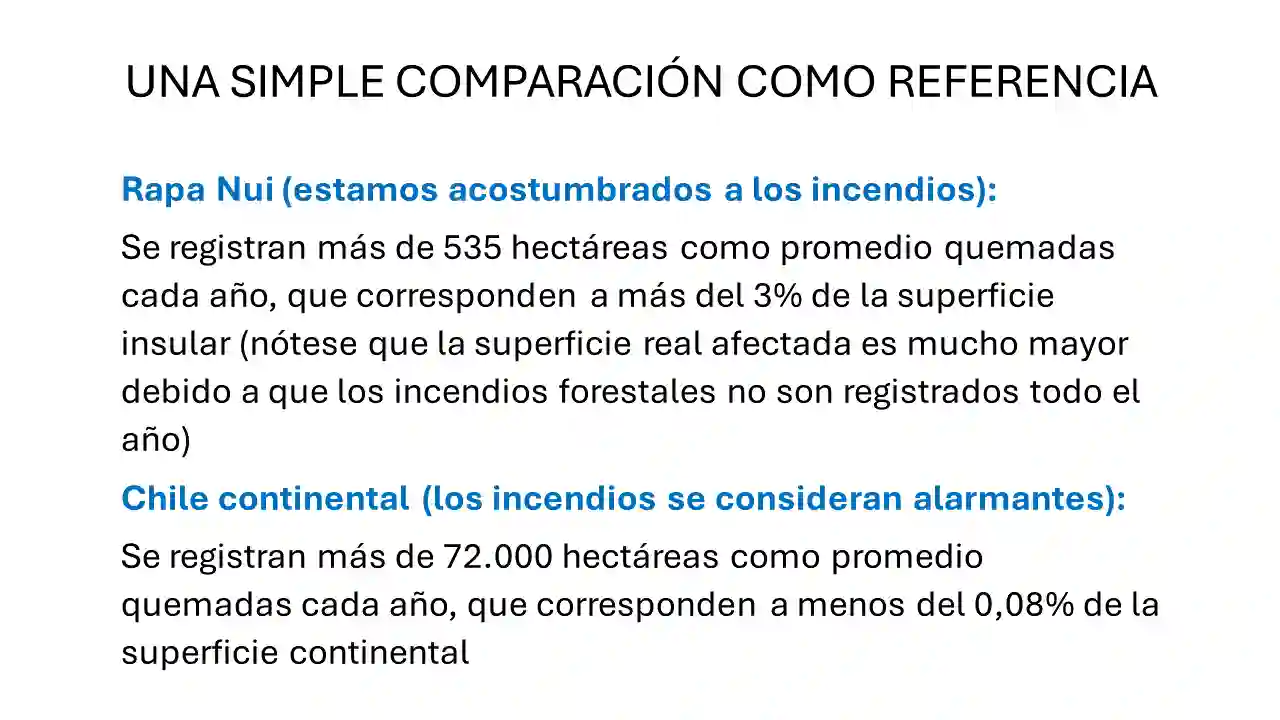 Con esta pregunta queremos que la gente piense de una manera más amplia en la problemática de los incendios forestales no como algo aislado o sectorial sino como un problema más que debemos abordar como parte del proceso de adaptación al cambio climático en Rapa Nui.