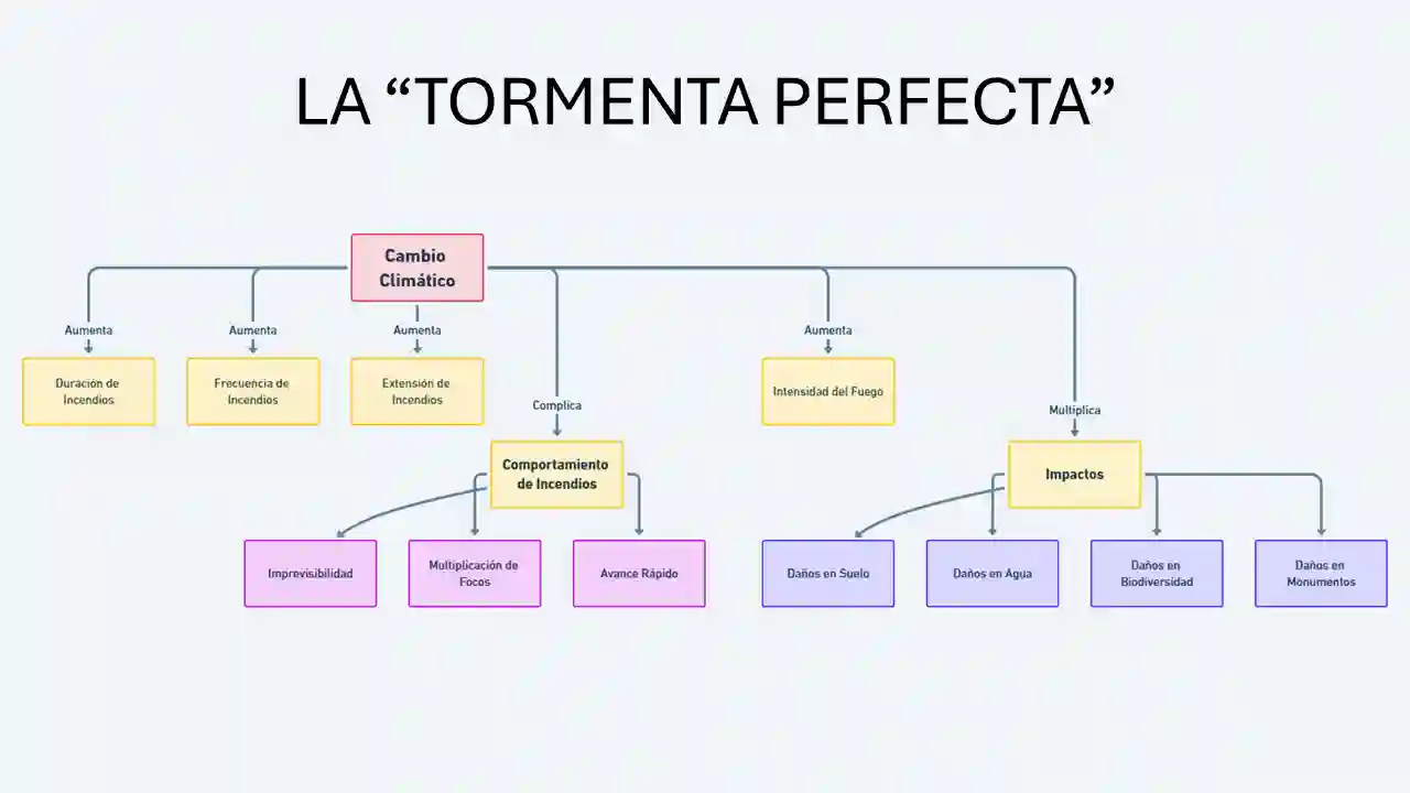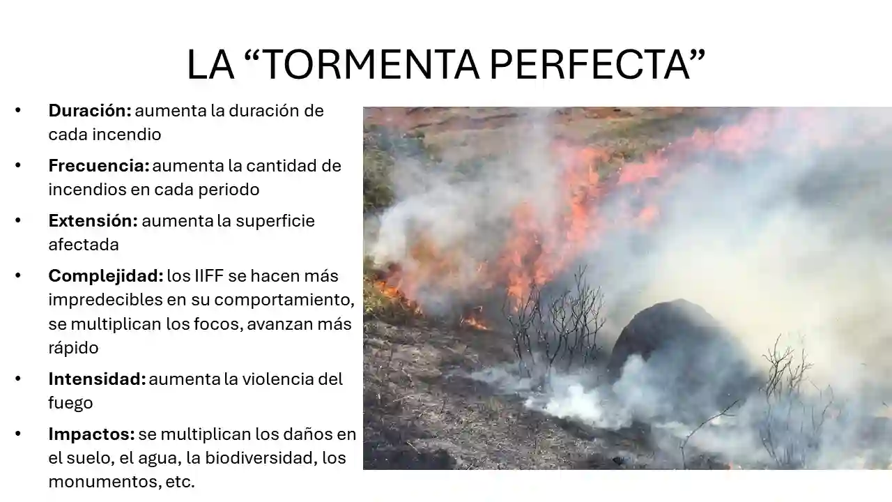 - Diagnóstico de la Situación Actual: Se presentaron estadísticas y casos específicos que ilustraron la frecuencia y el impacto de los incendios forestales en los últimos años. Se destacó la relación entre la disminución de las precipitaciones y el aumento de la temperatura global con la incidencia de incendios.
