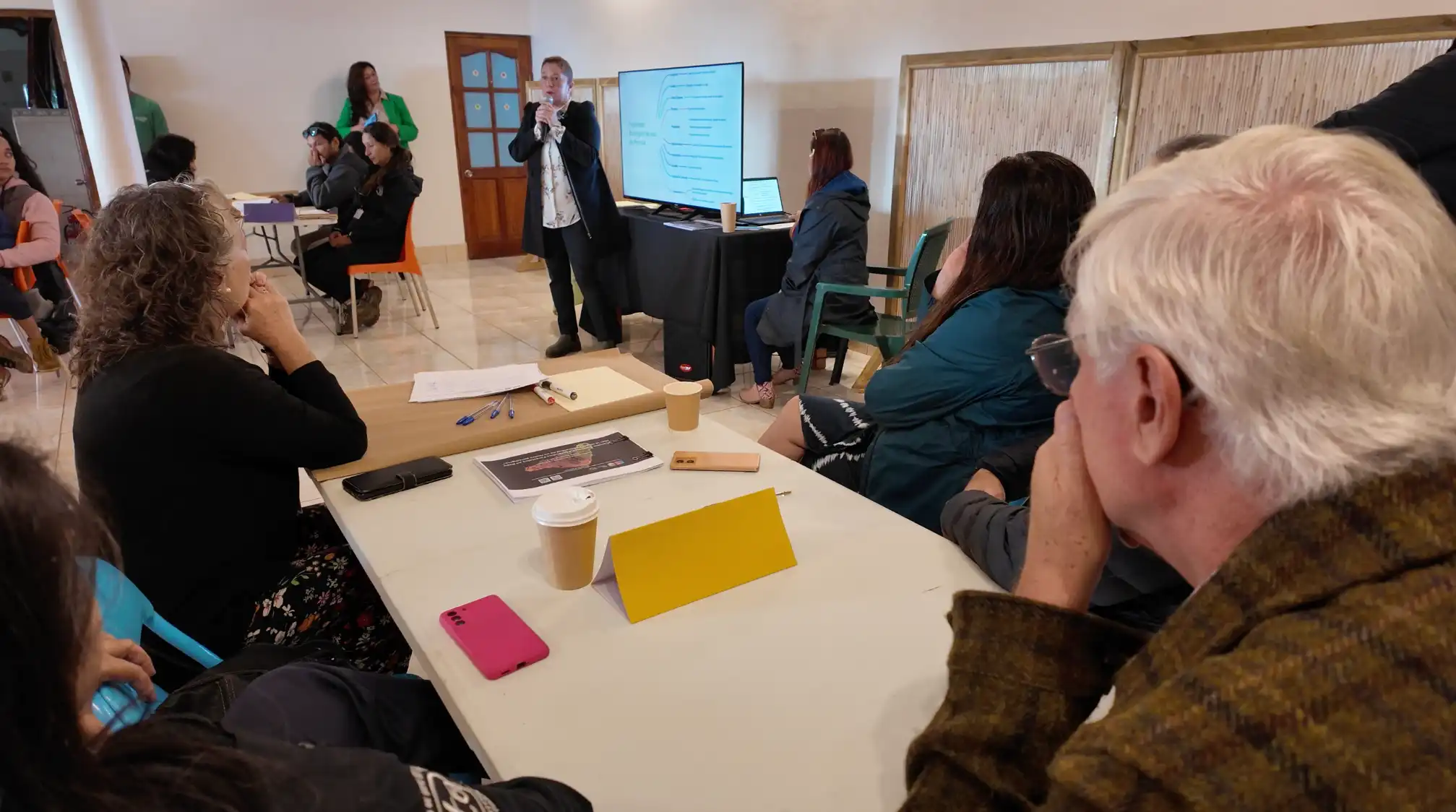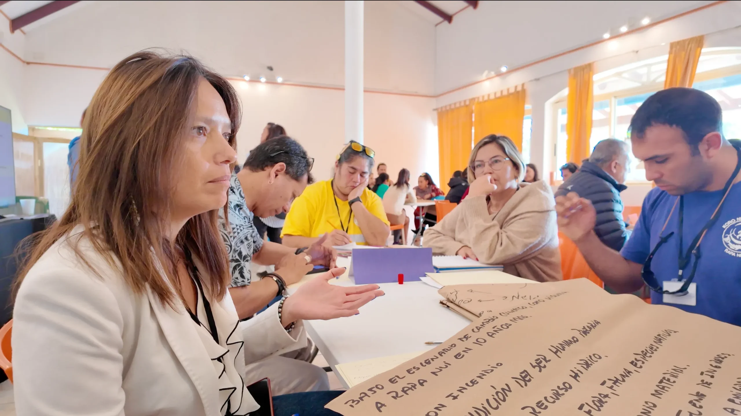 Este evento, organizado bajo la metodología de World Café, reunió a aproximadamente 30 participantes de diversos organismos públicos. La actividad se llevó a cabo en el espacio denominado Museo Tadeo & Lili, en la costanera de Hanga Roa.