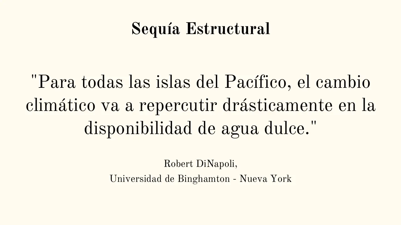 - Escasez de agua: La agricultura en Rapa Nui depende en gran medida de fuentes de agua subterránea y pequeñas captaciones superficiales. Sin embargo, con la disminución de las lluvias y el aumento de las temperaturas, se ha visto una creciente presión sobre los acuíferos y el sistema de captación de agua de lluvia. Una posible solución es la implementación de zanjas de infiltración y depósitos de almacenamiento de agua que capten el agua de las lluvias esporádicas para su uso durante las épocas secas.