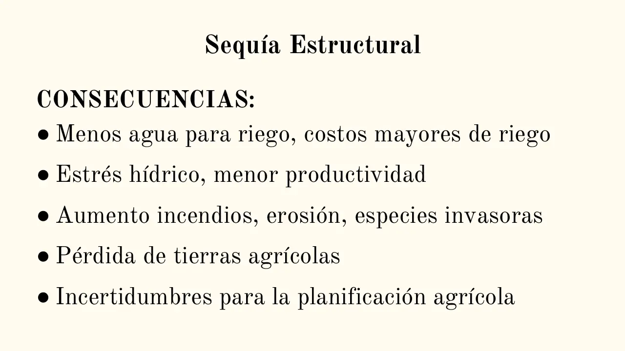 Adaptarse a estos desafíos requiere una gestión integrada de los recursos hídricos, la implementación de prácticas de conservación del suelo y la diversificación de cultivos para aumentar la resiliencia del sistema agrícola.