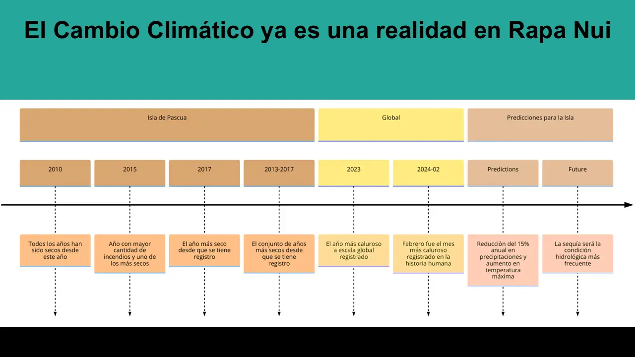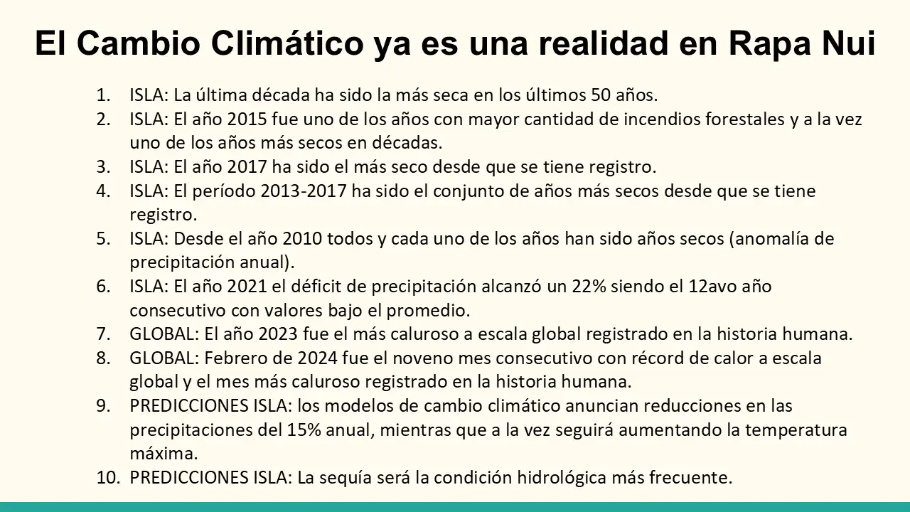 Las señales del cambio climático en Rapa Nui son claras y evidentes. Entre los fenómenos más graves observados están: