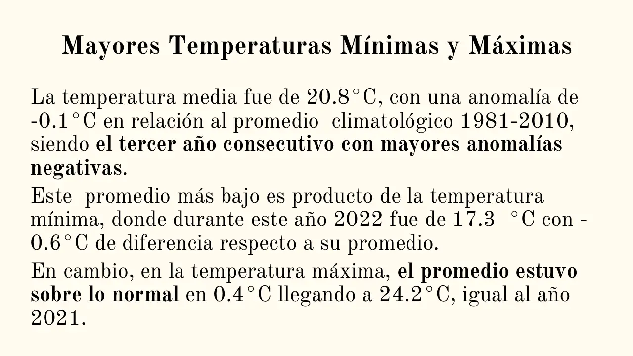 El aumento de las temperaturas también está generando estragos. Tanto las máximas como las mínimas han experimentado cambios. Si bien la temperatura media de 2022 fue de 20.8°C (una ligera anomalía negativa), el promedio de temperaturas mínimas cayó por debajo de lo esperado. Estas variaciones no solo afectan directamente los cultivos, sino también la biodiversidad y la salud del suelo, factores críticos para la sostenibilidad agrícola.