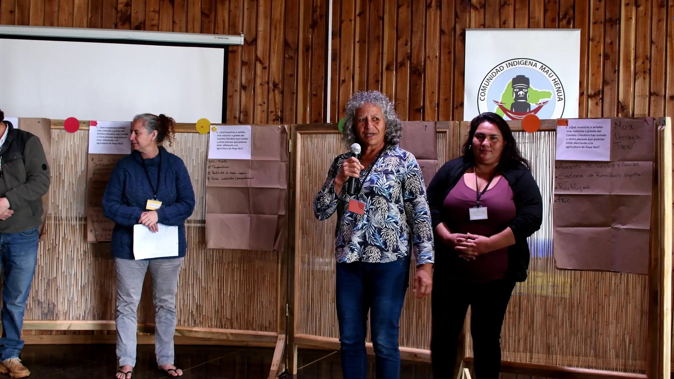 En general, los cinco grupos coincidieron en que un nuevo paradigma agrícola en Rapa Nui debe basarse en la integración de técnicas ancestrales y modernas, el uso eficiente del agua, la regeneración del suelo y la protección contra plagas y condiciones climáticas adversas. Además, destacaron la importancia de la educación y la colaboración comunitaria para asegurar una adaptación efectiva al cambio climático. Esta información será fundamental para la creación de un plan de acción y la elaboración de una propuesta para un nuevo paradigma agrícola adaptado al cambio climático en la isla.