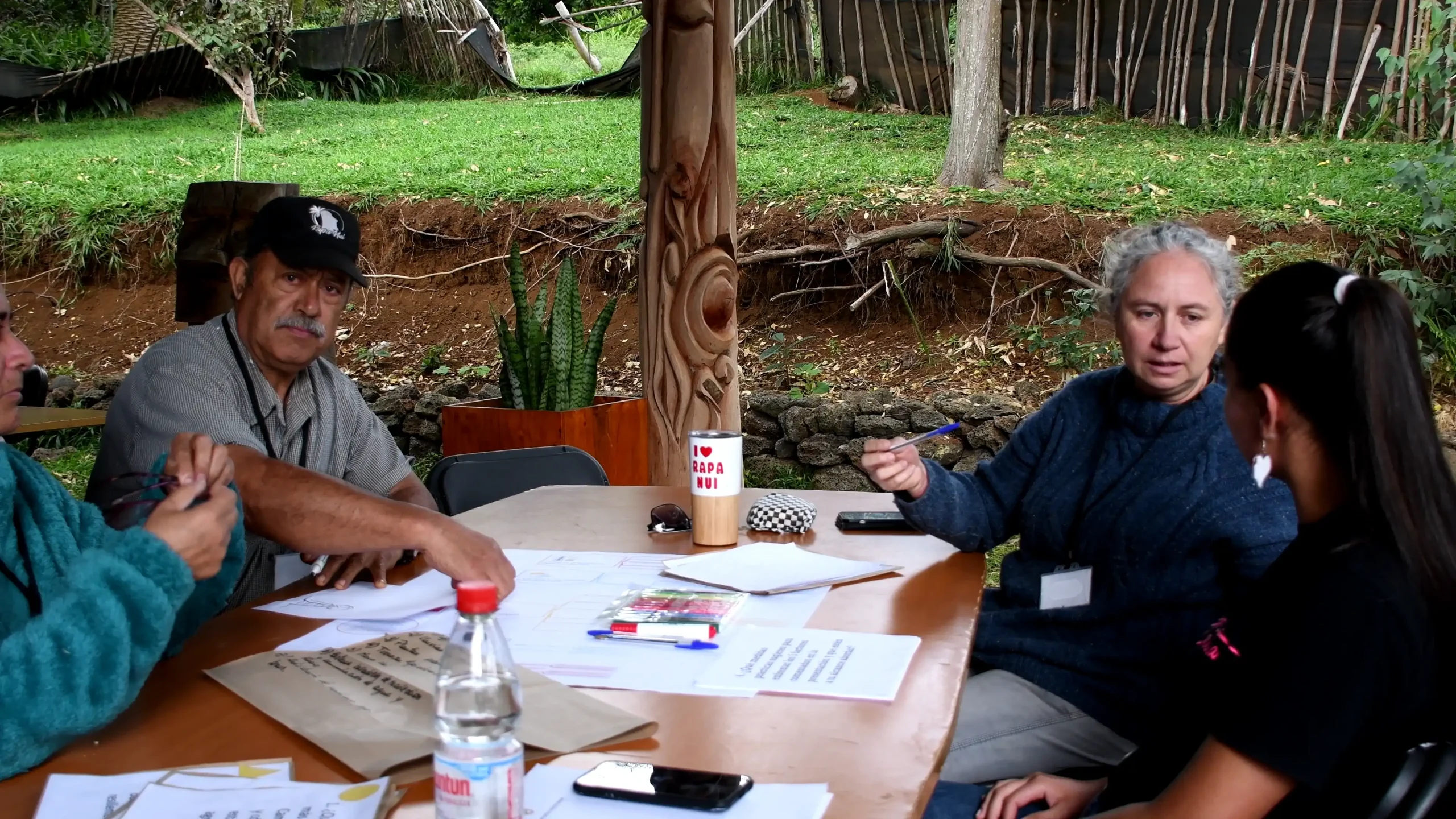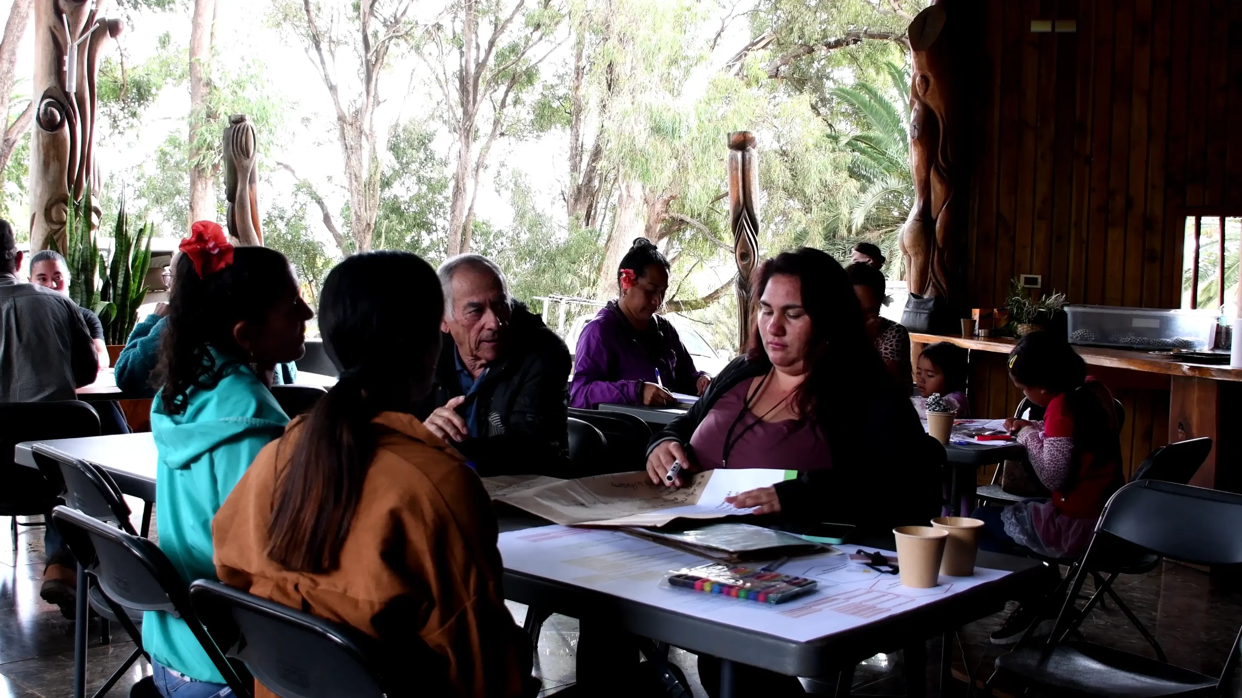 Cada mesa estuvo compuesta por un grupo de trabajo diverso, donde los participantes discutieron, reflexionaron y compartieron experiencias y conocimientos. Cada mesa se enfocó en una pregunta específica, y los participantes rotaron por las distintas mesas a lo largo del taller, asegurando que todas las voces fueran escuchadas y que las ideas fueran compartidas y enriquecidas en múltiples niveles. El objetivo fue generar una reflexión colectiva y llegar a consensos sobre las mejores estrategias para enfrentar los desafíos del cambio climático en la agricultura de Rapa Nui.