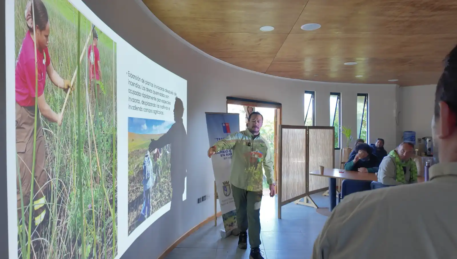 Uno de los temas clave abordados en la plenaria fue el avance de la reforestación en la Isla de Pascua desde los años 70. Un participante recordó que, en esa época, muchas áreas de la isla estaban completamente desprovistas de vegetación. La situación ha mejorado notablemente en las últimas décadas, con un aumento significativo de la reforestación en varias zonas. Sin embargo, también se discutieron las consecuencias no deseadas de la plantación de eucaliptos en la isla.