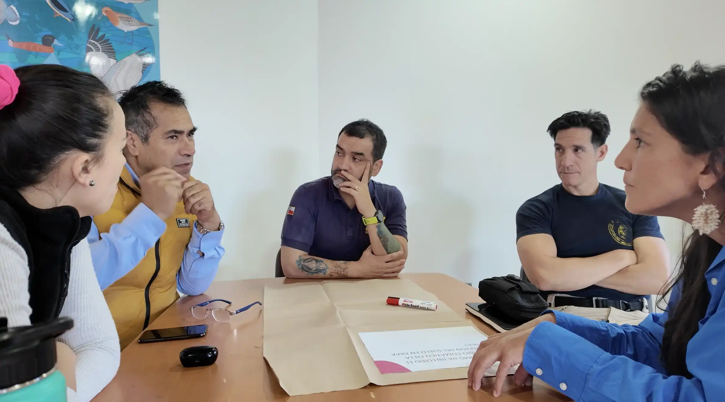 Agricultores, CONADI, Ma’u Henua, Municipalidad, PDI, Carabineros, Gobernación Marítima, Bienes Nacionales, Te Ma’u o te Vaikava e INDAP