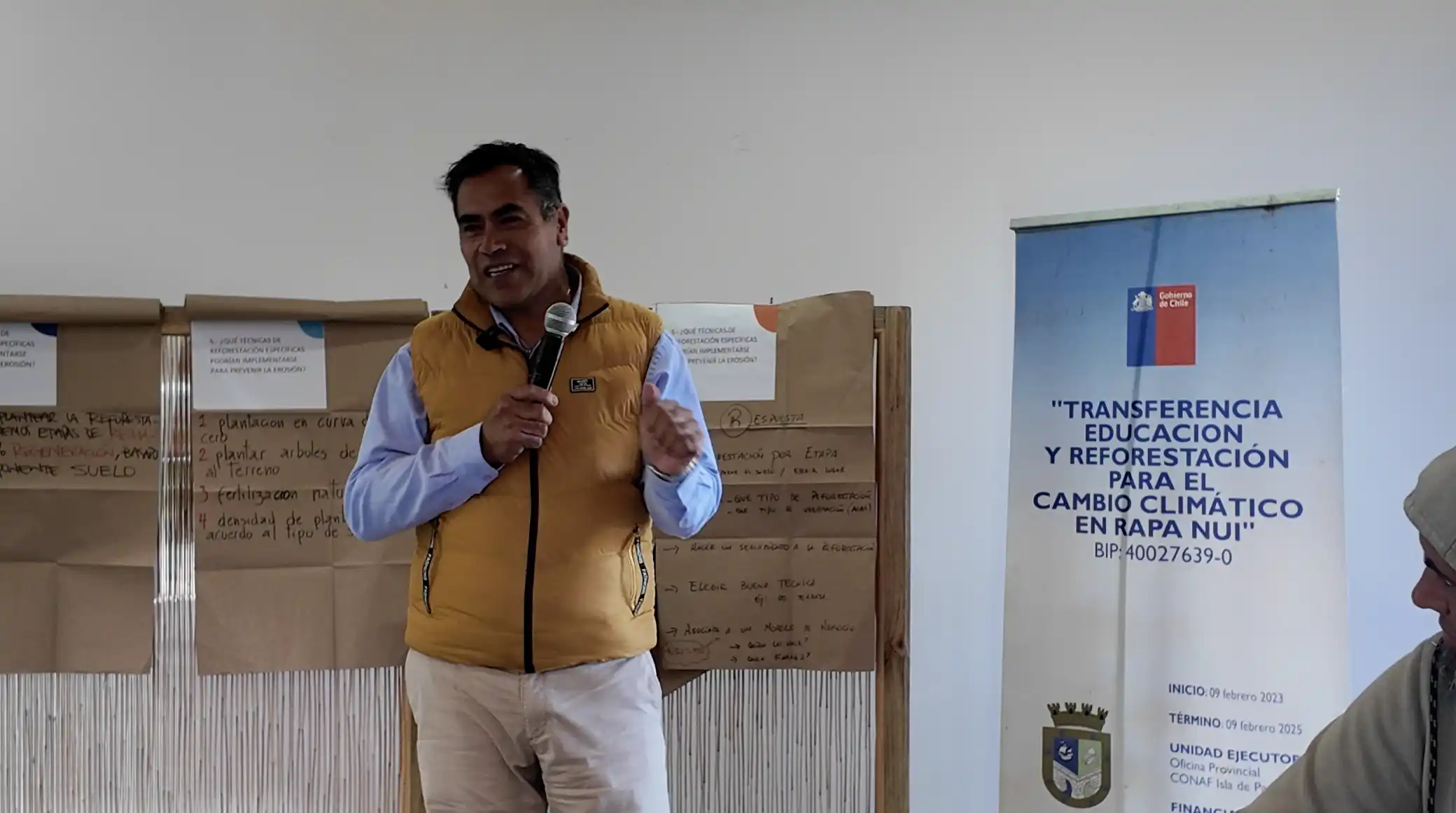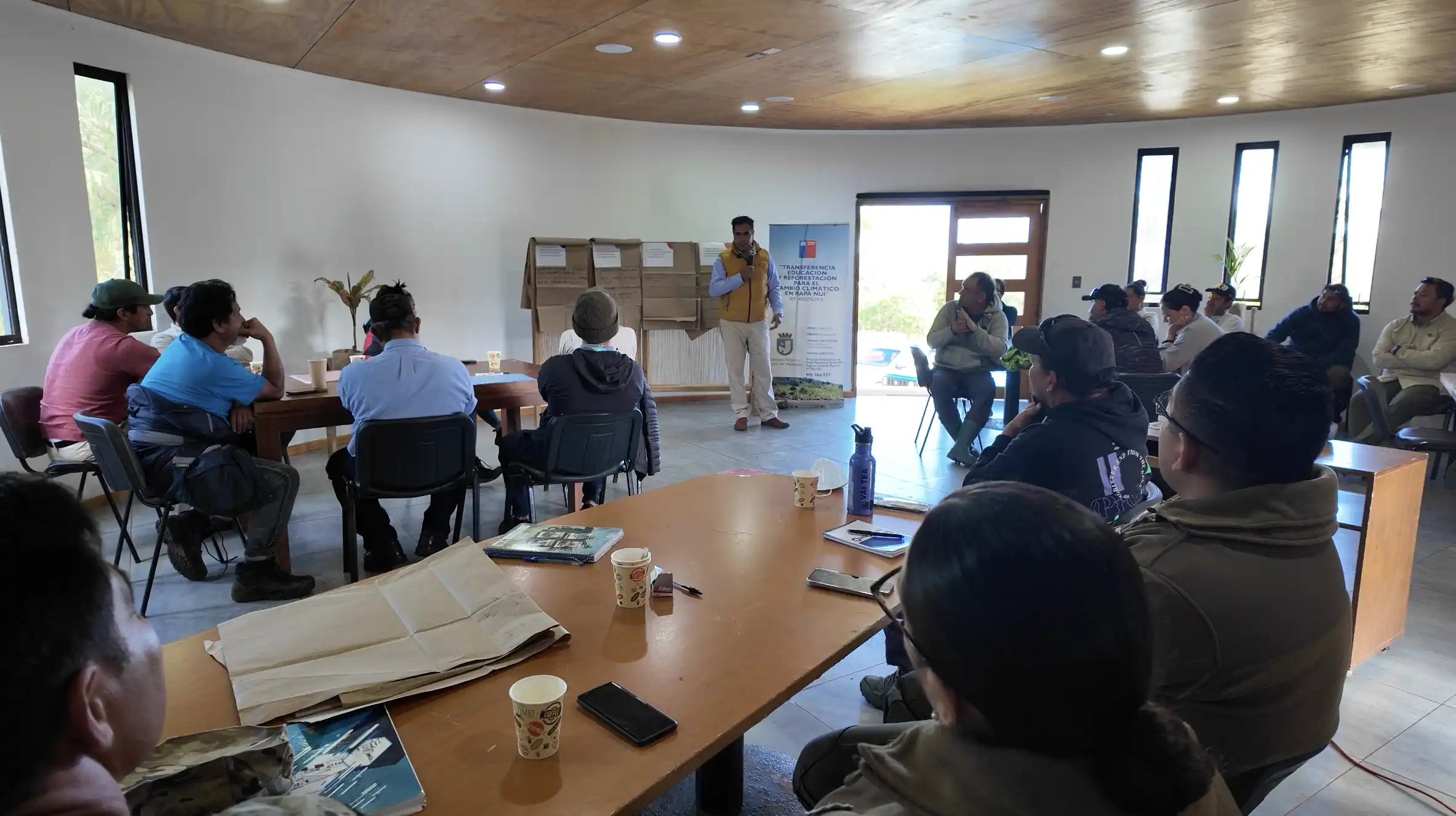 La actividad tiene como objetivo explorar los impactos del cambio climático en la erosión particularmente de tierras agrícolas en Rapa Nui, desde el,punto de vista de lo que las personas perciben. Utilizando la metodología World Café, se promoverá un diálogo participativo, donde los asistentes intercambiarán ideas en pequeños grupos, rotando entre las preguntas seleccionadas y preparadas por el equipo de CONAF. Esta metodología fomenta la conversación abierta y colaborativa, ideal para un tema tan complejo como el del cambio climático y la erosión.