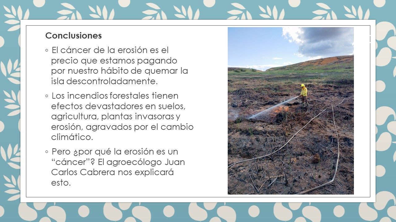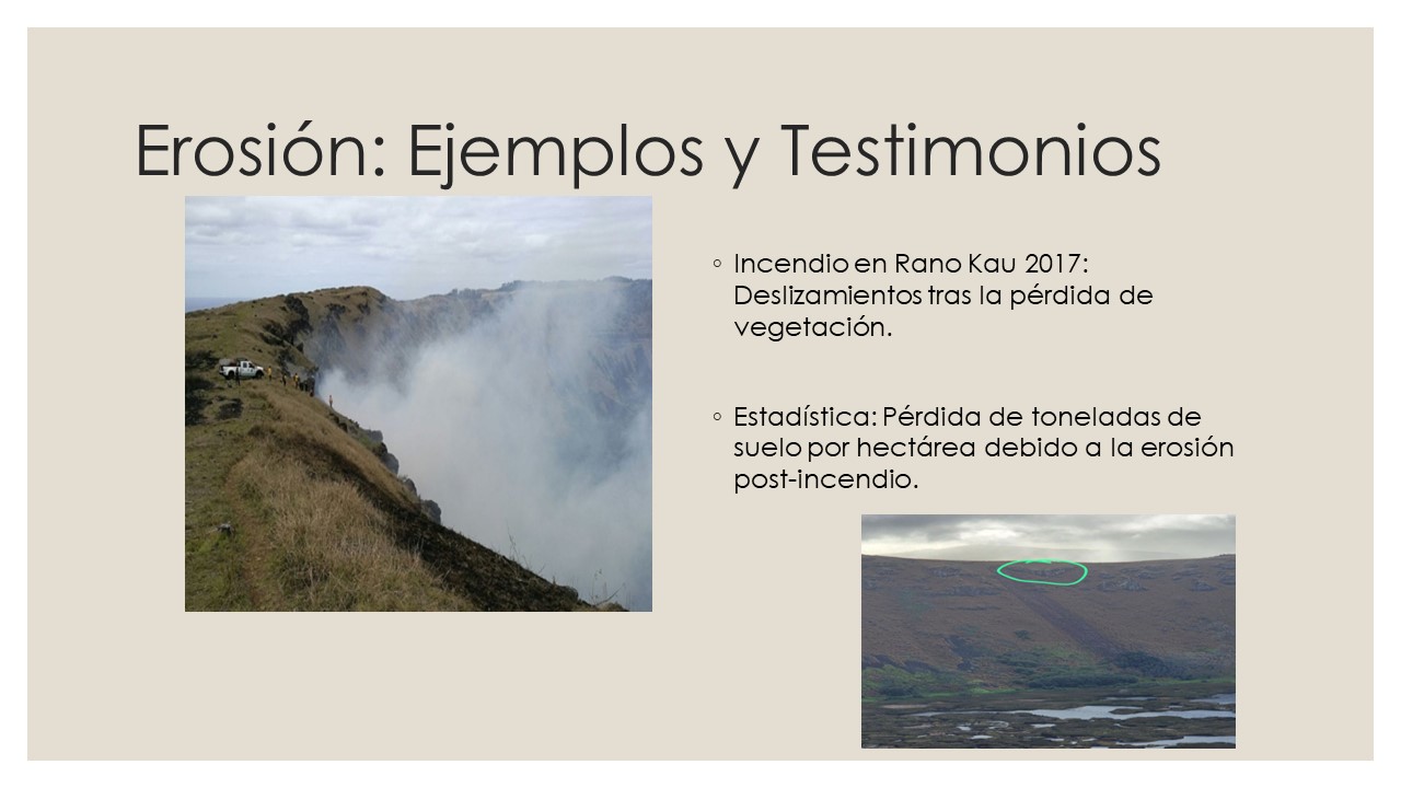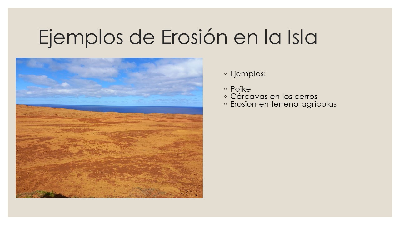 - Resumen de la presentación “La erosión en Rapa Nui, causas, efectos y las consecuencias del cambio climático” – Juan C. Cabrera, agroecólogo Programa de Cambio Climático