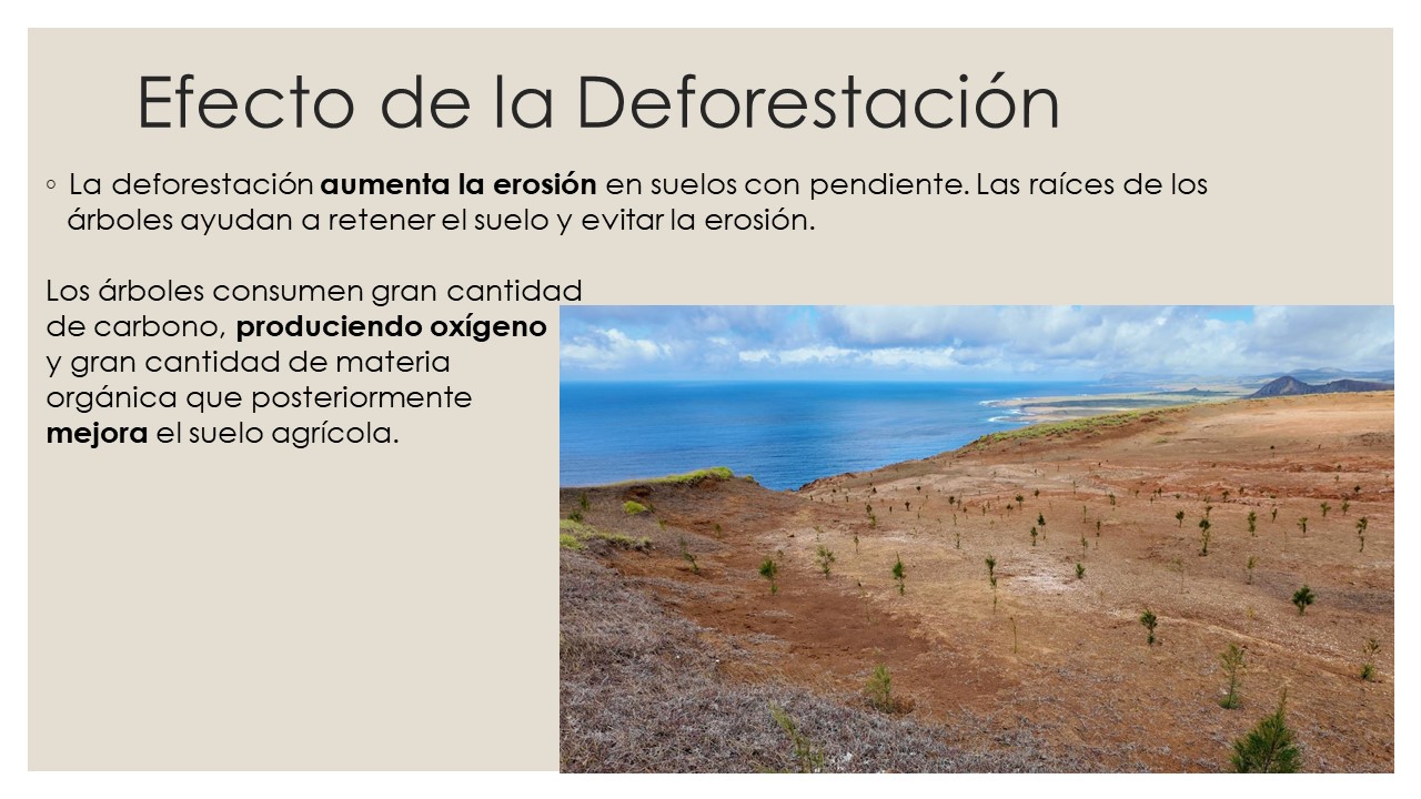 | La erosión afecta gravemente la capacidad productiva de la isla. Menos tierras cultivables significa menor producción agrícola, lo que disminuye los ingresos y aumenta la dependencia de productos importados. |