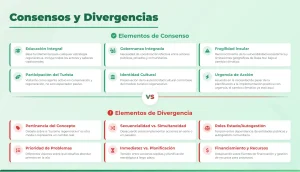 - Reservas conceptuales: Cuestionamientos al concepto mismo. La Mesa Roja consideró que «regenerativo» es solo una moda conceptual. La Mesa Verde prefiere hablar de «turismo Rapa Nui» como concepto integrador.