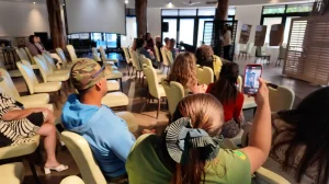Bien, vamos a continuar con esta conversación que es fundamental para el futuro de Rapa Nui. Como saben, venimos de una serie de mesas de trabajo. La última mesa de conversación sobre turismo fue la que abrió la puerta a este tema que vamos a abordar hoy: el turismo regenerativo. ¿Por qué surgió? Porque estábamos discutiendo las oportunidades y amenazas que plantea el cambio climático para nuestra actividad turística aquí en la isla.