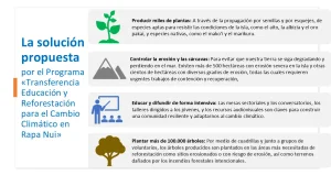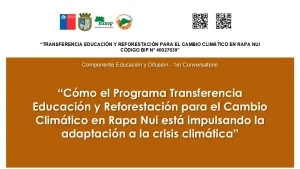 Estamos hablando del programa «Transferencia Educación y Reforestación para el Cambio Climático en Rapa Nui». Este es un programa que ya lleva trabajándose casi dos años y que originalmente terminaba en febrero, aunque se está pidiendo un poco más de tiempo para extenderlo.