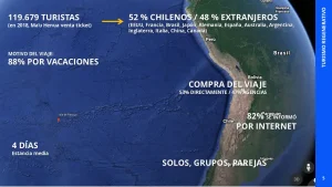 La pandemia causó una caída total del turismo a nivel mundial. Sin embargo, es importante recordar que Rapa Nui crecía a una tasa del 6%, dos puntos por encima de la tasa mundial del 4%. ¿Qué implica esto? Que el turismo crece naturalmente, aunque no hagamos grandes esfuerzos de marketing. Por eso, cuando hablamos de marketing, no es para buscar más turistas a ciegas, sino para atraer a ese turista específico, que está realmente interesado en la isla y que ocupe ese espacio en el avión. Es un enfoque con «mira telescópica», apuntando a mercados como Francia, que tienen un vínculo tradicional con la isla.